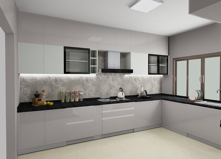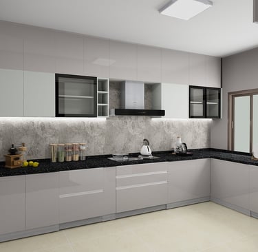 Refined Silver-Black Modular Kitchen Design